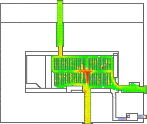 Mit Hilfe einer CFD-Simulation kann man u.a. ermitteln, wie lang im Gebäude eine rauchfreie, bzw. raucharme Schicht vorhanden ist.